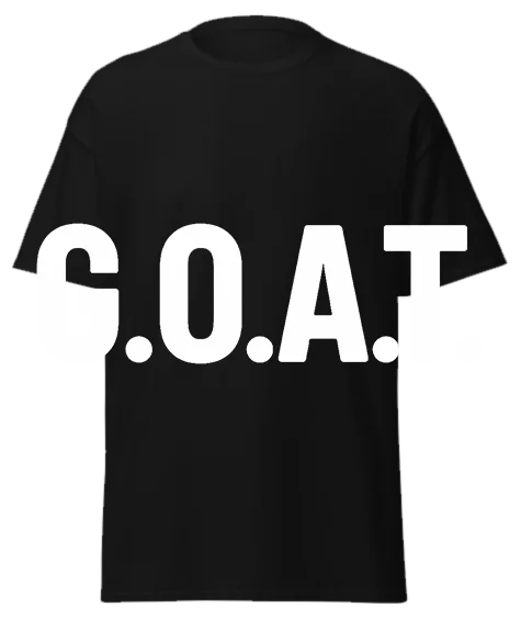 This is a black unisex t-shirt for people who know their worth and don’t need anyone else’s confirmation. Bold white text declaring GOAT status with the confidence of someone who’s earned it or just doesn’t care if they haven’t.