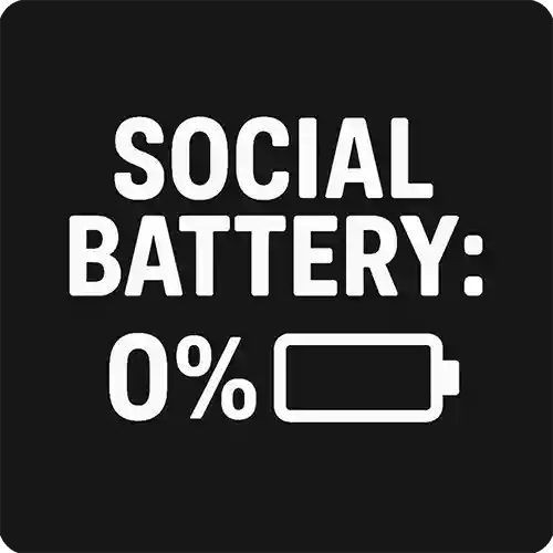 For introverts, programmers, tech workers, and anyone whose idea of a perfect day involves zero human contact and maximum screen time. The design uses tech language to express social exhaustion—your battery didn’t drain gradually, it started empty. Works well as a gift for software engineers who live in their IDE, gamers who consider voice chat too much interaction, IT professionals who prefer tickets over meetings, or anyone whose recharge method is solitude and whose social obligations are viewed as system errors.